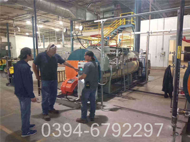 随后锅炉压力缓慢升到0.4MPa维持12小时。然后停止燃烧,让压力逐渐降至0.1MPa,水温低于70℃,卧式快装蒸汽锅炉,,开启排污阀让炉水全部放尽。⑸压力降至0MPa待锅炉冷却方可开启人孔,用清水冲洗锅炉内部,并检查至无油垢时,才算煮炉完毕,否则再按上述要求,再次煮炉。煮炉结束后,应交替进行持续上水和排污,直到水质达到运行标准;然后应停炉排水,,,冲洗锅炉内部和液接触过的阀门,并应清除锅筒内部的沉积物,检查排污阀有无堵塞现象。◆凡锅炉人孔、手孔打开后,在关闭人孔、手孔时须更换密封衬垫。㈢严密性试验锅炉烘炉、煮炉合格后,应按下列步骤进行严密性试验:1、升压至0.3~0.4MPa时,对锅炉范围内的法兰、人孔、手孔及其他连接螺栓进行一次热状态下的紧固。